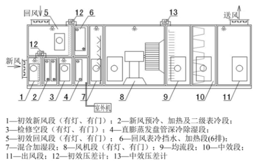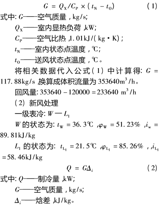 引言隨著計(jì)算機(jī)、信息技術(shù)的發(fā)展,微電子工業(yè)的發(fā)展已成為世界技術(shù)進(jìn)步的主要支柱。微電子工業(yè)已成為衡量一個國家的科學(xué)技術(shù)和經(jīng)濟(jì)發(fā)展實(shí)力的重要標(biāo)志,發(fā)達(dá)國家把微電子工業(yè)作為戰(zhàn)略性產(chǎn)業(yè)[1]。近年來,境外微電子工業(yè)大規(guī)模地向中國大陸轉(zhuǎn)移,我國電子工業(yè)發(fā)展迅速, 2010 年實(shí)現(xiàn)銷售收入6. 3 萬億元,工業(yè)增加值 1. 5 萬億元,占 GDP 比重的5%,我國已成為全球最大的電子信息產(chǎn)品制造基地[2]。微電子工業(yè)的重要特點(diǎn)之一就是生產(chǎn)車間對溫度、濕度、潔凈度要求高,特別是芯片、超大規(guī)模集成電路生產(chǎn)車間更是如此。巨大的需求空間,使得對電子潔凈廠房空調(diào)系統(tǒng)進(jìn)行深入研究顯得尤為重要。 1 電子潔凈廠房空調(diào)的特點(diǎn) ( 1) 控制參數(shù)多且控制精度高相對于一般空調(diào)系統(tǒng),電子潔凈廠房空調(diào)不僅對溫度、濕度有要求,還對潔凈度和壓力有相應(yīng)要求,并且控制精度高[3],相應(yīng)地對自控系統(tǒng)的要求也較高。表1 中的數(shù)據(jù)可以說明這一點(diǎn)( 同一工藝在不同的生產(chǎn)間或廠房數(shù)據(jù)有一定差別) 。 ( 2) 新風(fēng)量大電子潔凈廠房的新風(fēng)量通常按后面兩項(xiàng)的最大值來確定:( 1) 滿足人的衛(wèi)生要求40m3 /h; ( 2) 補(bǔ)償室內(nèi)排風(fēng)量和保持室內(nèi)正壓值所需新風(fēng)量之和。電子潔凈廠房絕大多數(shù)( 如 SMT、 PTH、印刷車間等) 都有廢氣或污染、熱空氣排出,排風(fēng)量大,同時《電子工業(yè)潔凈廠房設(shè)計(jì)規(guī)范》對潔凈室的正壓作了明確要求,為了滿足規(guī)范要求,需要的新風(fēng)量較大。實(shí)際工程經(jīng)驗(yàn)表明: 第二項(xiàng)所需新風(fēng)量通常大于第一項(xiàng)。 ( 3) 空調(diào)負(fù)荷大電子潔凈廠房空調(diào)負(fù)荷包括圍護(hù)結(jié)構(gòu)負(fù)荷、人體負(fù)荷、照明負(fù)荷、設(shè)備負(fù)荷、新風(fēng)負(fù)荷。電子潔凈廠車間面積大、層高高、工藝設(shè)備發(fā)熱量大,新風(fēng)量大,而且室內(nèi)溫度夏季較低,這些最終使得總負(fù)荷大。實(shí)際工程經(jīng)驗(yàn)表明: 電子潔凈廠房夏季負(fù)荷指標(biāo)都在300W/m 以上,有的甚至達(dá)到800W/m。 ( 4)空調(diào)機(jī)房占地面積大、數(shù)量多電子潔凈廠房的負(fù)荷大、風(fēng)量大、空氣處理過程復(fù)雜( 熱濕處理、過濾處理等) 、空調(diào)組段多、空調(diào)設(shè)備尺寸大,這些最終使得空調(diào)機(jī)房占地面積大,而且空調(diào)機(jī)房管路復(fù)雜布置不易。 2 常規(guī)溫濕度獨(dú)立控制系統(tǒng)的分析與總結(jié) 溫濕度獨(dú)立控制系統(tǒng)的核心思想就是通過對新風(fēng)、回風(fēng)的分別處理實(shí)現(xiàn)溫度和濕度的獨(dú)立控制,對新風(fēng)的處理實(shí)現(xiàn)對房間的濕度的控制,對回風(fēng)的處理實(shí)現(xiàn)對房間溫度的控制。除濕和降溫對冷源溫度的要求不同:除濕時,若采用冷凍除濕方式,要求冷源溫度低于空氣露點(diǎn)溫度,處理后空氣所要達(dá)到的露點(diǎn)溫度越低,要求冷源溫度也就越低; 降溫時,只要求冷源溫度低于室內(nèi)干球溫度,而室內(nèi)干球溫度相對較高,因而冷源溫度也就可以相對較高,從而冷源設(shè)備可以采用 COP 較高的高溫冷水機(jī)組。溫濕度獨(dú)立控制系統(tǒng)比傳統(tǒng)空調(diào)系統(tǒng)能更好地控制房間濕度和滿足室內(nèi)熱濕比的變化,房間濕度控制標(biāo)準(zhǔn)嚴(yán)格避免了再熱損失[4]。由于在溫度控制過程中使用的是 COP 較高的高溫冷水機(jī)組以及避免了再熱損失,因而溫濕度獨(dú)立控制系統(tǒng)節(jié)能效果顯著,文獻(xiàn)[ 5]的研究表明在南方地區(qū)節(jié)能率為 25% ~ 55%,在北方地區(qū)節(jié)能率為10% ~30%。溫濕度獨(dú)立控制系統(tǒng)在實(shí)際應(yīng)用中有多種形式,其中應(yīng)用的較多的有以下幾種,各形式間主要區(qū)別在于對新風(fēng)的處理方法不同。 ( 1) 轉(zhuǎn)輪除濕 +高溫冷源降溫轉(zhuǎn)輪分為處理區(qū)和再生區(qū),新風(fēng)進(jìn)入處理區(qū)后,由于吸濕劑的水蒸汽分壓力低于新風(fēng)的水蒸汽分壓力,新風(fēng)的水分被吸濕劑吸附,除濕后的新風(fēng)被處理機(jī)送出。與此同時,再生空氣經(jīng)加熱后進(jìn)入轉(zhuǎn)輪的再生區(qū),由于在高溫下,空氣的水蒸汽分壓力低于吸濕劑的水蒸汽分壓力,原先吸附的水分被脫附,并隨濕空氣排至室外,轉(zhuǎn)輪則恢復(fù)了除濕能力。優(yōu)點(diǎn): 性能穩(wěn)定,壽命長; 單位吸濕面積除濕量大;適用溫度范圍寬: - 30 ~ 40℃[6]。缺點(diǎn): 再生部分的溫風(fēng)需要加熱,耗電較多;接管較復(fù)雜。 ( 2) 溶液除濕+高溫冷源降溫 溶液除濕是利用吸濕溶液和處理空氣之間的水蒸汽分壓力差來吸收處理空氣的水蒸氣,從而達(dá)到除濕的目的。優(yōu)點(diǎn): 除濕效果好,能連續(xù)工作,兼有清潔空氣的功能[6]。缺點(diǎn):設(shè)備比較復(fù)雜,初投資非常高,再生時需要有熱源,冷卻水耗量大。 ( 3)雙溫冷源冷凍除濕 +降溫該方式核心就是空調(diào)水系統(tǒng)采用兩套系統(tǒng),低溫冷凍水用于處理新風(fēng)