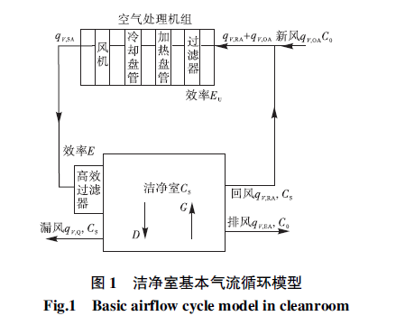 摘要:為減少潔凈室能耗,提出了理論計(jì)算潔凈室換氣次數(shù)的新數(shù)學(xué)模型,新模型基于室內(nèi)空氣顆粒物輸送的模擬流程,室內(nèi)氣溶膠濃度計(jì)算考慮了換氣次數(shù)、室內(nèi)顆粒物散發(fā)量、過濾器效率、新風(fēng)比和室外氣溶膠濃度等多個參數(shù).將新的數(shù)學(xué)模型與以往的數(shù)學(xué)模型進(jìn)行了對比,新的數(shù)學(xué)模型考慮了更多的環(huán)境參數(shù)和變量的影響,這使得新的數(shù)學(xué)模型計(jì)算得出的換氣次數(shù)更合理、更精確.采用敏感性分析的方法,評價了各個變量對潔凈室潔凈度的影響大?。芯拷Y(jié)果表明計(jì)算室內(nèi)氣溶膠濃度時考慮更全面的參數(shù)變量可以把潔凈室的換氣次數(shù)降到最小并滿足潔凈室要求,從而有效降低潔凈室的能耗. 潔凈室是指懸浮粒子的濃度受控,其建造和使用方式使得進(jìn)入、產(chǎn)生、滯留于室內(nèi)的顆粒物最少;室內(nèi)的其他參數(shù),如溫度、濕度、氣壓按需要受控[1],也就是說不論外界的空氣條件如何變化,潔凈室內(nèi)都能具有維持原先所設(shè)定的潔凈度、溫濕度及壓力等特性. 非單向流潔凈室也俗稱亂流潔凈室,利用過濾效率超過99.97%的高效顆粒物空氣(HEPA)過濾器去除送風(fēng)中的顆粒物,大量潔凈空氣送入房間稀釋顆粒污染物,降低氣溶膠計(jì)數(shù)濃度達(dá)到要求的潔凈室級別.潔凈室可以分為工業(yè)潔凈室和生物潔凈室.目前,潔凈室在醫(yī)藥與醫(yī)學(xué)行業(yè)、化妝品行業(yè)、半導(dǎo)體行業(yè)、食品行業(yè)以及生物工程行業(yè)等得到了廣泛的應(yīng)用.然而隨著潔凈室的廣泛應(yīng)用,潔凈室的高能耗問題越來越引起人們的關(guān)注.為了維持潔凈室內(nèi)較低的顆粒物濃度,潔凈室設(shè)計(jì)人員通常通過提高換氣次數(shù)利用潔凈空氣稀釋顆粒污染物的方式來實(shí)現(xiàn),這就使得潔凈室的能耗是相同空間普通建筑的能耗的50 倍左右[2].現(xiàn)在潔凈室的換氣次數(shù)大致范圍為15~600次/h,而普通建筑的換氣次數(shù)大致范圍為6~25 次/h,潔凈室的換氣次數(shù)不僅要滿足熱、濕負(fù)荷的需要,更重要的是稀釋和去除室內(nèi)顆粒物從而達(dá)到降低室內(nèi) 顆粒物濃度的目的,較大的換氣次數(shù)雖然能滿足潔凈室潔凈級別的要求,但是卻造成了巨大的能源浪費(fèi),給國家和企業(yè)造成沉重的能源負(fù)擔(dān)和經(jīng)濟(jì)負(fù)擔(dān).隨著我國經(jīng)濟(jì)的飛速發(fā)展,大量的工業(yè)潔凈室和生物潔凈室相繼建成,潔凈室面積呈現(xiàn)飛躍增長,潔凈室節(jié)能已迫在眉睫,而潔凈室節(jié)能的關(guān)鍵是減少送風(fēng)量,即減少換氣次數(shù).筆者重點(diǎn)討論了潔凈室換氣次數(shù)的新計(jì)算方法,并對新計(jì)算方法的變量靈敏性和節(jié)能性進(jìn)行了分析. 1 潔凈室設(shè)計(jì)中換氣次數(shù)的計(jì)算方法及不足 目前,潔凈室設(shè)計(jì)中廣泛采用以下3 種計(jì)算方法來確定換氣次數(shù). 第一種計(jì)算方法是根據(jù)各個標(biāo)準(zhǔn)推薦的換氣次數(shù)建議值,這些標(biāo)準(zhǔn)包括IEST(美國環(huán)境科學(xué)與技術(shù)學(xué)會)推薦的建議值[3]、ISO(國際標(biāo)準(zhǔn)化組織)推薦的建議值[4]和國標(biāo)GB50073 推薦的建議值[5]等.這些標(biāo)準(zhǔn)中推薦的不同級別潔凈室換氣次數(shù)如表1 所示.然而,這些標(biāo)準(zhǔn)中的建議值來源于標(biāo)準(zhǔn)制定專家委員會的工程經(jīng)驗(yàn),只是建議了滿足潔凈室級別所需要的換氣次數(shù)(出于安全保險(xiǎn)的原因,實(shí)際上是最大顆粒物污染負(fù)荷情況下的建議值),沒有給出科學(xué)的計(jì)算方法,更沒有考慮每個潔凈室的實(shí)際情況,忽略了許多關(guān)鍵性因素的定量分析,如室內(nèi)顆粒物的產(chǎn)生率、顆粒物的表面沉降率、通過送風(fēng)進(jìn)入室內(nèi)的顆粒物的濃度和通過回風(fēng)和排風(fēng)帶走的室內(nèi)顆粒物等.這種按照標(biāo)準(zhǔn)建議方法確定的換氣次數(shù)使其偏離于實(shí)際需要,很多情況下?lián)Q氣次數(shù)很高但潔凈室的潔凈度并沒有明顯提高,究其原因就是沒有考慮潔凈室的實(shí)際需要而盲目地參考標(biāo)準(zhǔn)的建議值. 第2 種計(jì)算方法是根據(jù)一些專家或?qū)W者推薦的經(jīng)驗(yàn)換氣次數(shù)計(jì)算公式來確定換氣次數(shù)[6-7].同樣,這種方法也僅考慮了一些簡單可預(yù)測的因素,忽略了大量決定性因素,使得潔凈室的換氣次數(shù)與實(shí)際需要值偏差較大. 第3 種計(jì)算方法是一些有經(jīng)驗(yàn)的設(shè)計(jì)人員根據(jù)以往的設(shè)計(jì)經(jīng)驗(yàn)來確定潔凈室的換氣次數(shù)[8-10].采用這種計(jì)算方法時設(shè)計(jì)人員往往只考慮建筑物的體形系數(shù)、潔凈級別等,這種計(jì)算方法雖然也能滿足潔凈級別,但具有一定的盲目性,忽略了不同工藝類型潔凈室之間的差別,當(dāng)潔凈級別不能滿足潔凈度要求時,設(shè)計(jì)人員又試圖通過提高換氣次數(shù)來滿足潔凈級別,結(jié)果造成潔凈室換氣次數(shù)偏大,使?jié)崈羰业哪芎脑龃螅?/p> 現(xiàn)有的確定潔凈室換氣次數(shù)的計(jì)算方法都是僅僅從潔凈級別變化單值函數(shù)的角度來確定潔凈室的換氣次數(shù),上述3 種計(jì)