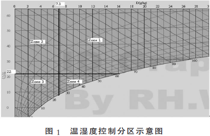 [摘要] 對(duì)半導(dǎo)體潔凈室溫濕度控制流程進(jìn)行介紹,并分析潔凈室的溫濕度控制方法。在PID 控制的基礎(chǔ)上,引入模糊控制達(dá)到提高控制的效果。 [關(guān)鍵詞] 溫濕度;PID;模糊控制 引言 隨著半導(dǎo)體生產(chǎn)工藝的不斷發(fā)展, 更精密、集成度更高是行業(yè)發(fā)展的趨勢(shì)。目前,制造工藝已經(jīng)進(jìn)入亞納米時(shí)代,線寬都在30-180 納米之間,對(duì)生產(chǎn)設(shè)備的精度要求越來(lái)越嚴(yán)格,因此,除了設(shè)備本身的工藝水平需要達(dá)到生產(chǎn)要求以外,其所處的生產(chǎn)環(huán)境——潔凈室的各項(xiàng)指標(biāo)也必須被嚴(yán)格地控制,包括:潔凈度、溫濕度、照度、氣流方向、振動(dòng)靜電、磁場(chǎng)以及有害氣體等。其中的溫濕度控制是重點(diǎn),其控制的效果直接影響著生產(chǎn)的優(yōu)良率。目前半導(dǎo)體潔凈室對(duì)溫濕度的控制范圍通常為: 溫度22+/-0.5℃,濕度45+/-3%RH。本文通過(guò)對(duì)現(xiàn)有潔凈室溫濕度控制系統(tǒng)的研究,引入模糊控制,以提高溫濕度控制的實(shí)際效果。 1 溫濕度處理過(guò)程 對(duì)空氣單純地加熱或制冷(未達(dá)到飽和狀態(tài))過(guò)程,是含濕量保持不變的過(guò)程,即絕對(duì)濕度保持不變的過(guò)程。濕空氣經(jīng)過(guò)盤管加熱,溫度升高而相對(duì)濕度下降;相反,對(duì)冷卻過(guò)程,溫度下降而相對(duì)濕度相應(yīng)升高,因此我們可以得出,溫度和相對(duì)濕度是兩個(gè)不同方向的控制量,要使溫濕度同時(shí)向相同的趨勢(shì)變化, 則單純靠加熱/冷卻過(guò)程是不能實(shí)現(xiàn)的。冷卻去濕過(guò)程是濕空氣經(jīng)冷卻達(dá)到飽和后繼續(xù)制冷的過(guò)程,濕空氣經(jīng)過(guò)冷卻盤管結(jié)露析出水滴從而降低了絕對(duì)濕度,起到去濕的作用。因而我們可以將空氣處理過(guò)程分為加熱、加濕、降溫及降溫去濕等四個(gè)過(guò)程。圖1 中,橫坐標(biāo)為含濕量,即每千克空氣所含有的水蒸量;縱坐標(biāo)為攝氏溫度。根據(jù)目標(biāo)狀態(tài),絕對(duì)濕度線和目標(biāo)溫度線可以劃分為四個(gè)控制區(qū): Zone 1,Zone 2,Zone 3,Zone 4。 為了達(dá)到目標(biāo)溫濕度控制點(diǎn),其對(duì)應(yīng)的溫濕度控制分區(qū)處理過(guò)程為:在Zone 1 的范圍內(nèi),先降溫去濕,再加熱。在Zone 2 的范圍內(nèi),先降溫,再加濕。在Zone 3 的范圍內(nèi),先加熱,再加濕。在Zone4 的范圍內(nèi),先降溫去濕,再加熱。 定義:D—控制對(duì)象含濕量,T—控制對(duì)象溫度。 通常情況下, 對(duì)于設(shè)定值溫度22+/-0.5℃,濕度45+/-3%RH 而言,Zone1 和Zone3 的情況比較多,即需要先降溫去濕然后再加熱或者先加熱然后再加濕。 2 潔凈室溫濕度處理基本流程及常見(jiàn)問(wèn)題 2.1 潔凈室溫濕度處理基本流程 半導(dǎo)體潔凈室廠房通常采用新風(fēng)空調(diào)箱(Makeup Air Unit,MAU)+風(fēng)機(jī)過(guò)濾單元(Fan Filter Unit,F(xiàn)FU)+干冷盤管(Dry Cooling Coil,DCC)的設(shè)計(jì),即新風(fēng)空調(diào)箱MAU 將具有一定潔凈等級(jí)和溫濕度的新風(fēng)送到潔凈室的回風(fēng)通道中,與循環(huán)回風(fēng)進(jìn)行混合后進(jìn)入潔凈室吊頂上方,通過(guò)風(fēng)機(jī)過(guò)濾單元FFU 后進(jìn)入潔凈室生產(chǎn)區(qū)域,從而基本達(dá)到無(wú)塵室的溫濕度、潔凈度及正壓度的要求。由于整個(gè)潔凈室內(nèi)擺滿了各種生產(chǎn)機(jī)器,這些機(jī)器都保持持續(xù)的運(yùn)轉(zhuǎn),會(huì)產(chǎn)生大量的熱量,這些熱量又將通過(guò)回風(fēng)通道內(nèi)的干盤管DCC 進(jìn)行冷卻而被帶走, 從而達(dá)到維持長(zhǎng)時(shí)間穩(wěn)定的溫濕度環(huán)境?;狙h(huán)如圖2 所示。 對(duì)于潔凈室的溫濕度控制,最主要的兩塊是新風(fēng)空調(diào)箱和干盤管。新風(fēng)空調(diào)箱除了要保證外界大氣經(jīng)過(guò)其中的初、中和高效過(guò)濾網(wǎng),把空氣中的粉塵顆粒過(guò)濾掉外,還要根據(jù)潔凈室里面的溫濕度情況調(diào)整出風(fēng)口的溫濕度,以保證送入的新風(fēng)在規(guī)定的溫濕度范圍內(nèi)。而干盤管是根據(jù)潔凈室里面安裝的溫濕度傳感器測(cè)量的值來(lái)調(diào)整干盤管冷水閥的開(kāi)度,進(jìn)而調(diào)節(jié)回風(fēng)和送風(fēng)混合后的溫濕度,以保證滿足半導(dǎo)體工藝的溫濕度需求。 由于每種工藝制程設(shè)備的發(fā)熱量大不相同,導(dǎo)致潔凈室內(nèi)的機(jī)臺(tái)發(fā)熱量分布不均勻。例如爐管機(jī)臺(tái)的發(fā)熱量相較于其他設(shè)備大得多(基本在3-5倍之間),因此必須在潔凈室內(nèi)用干盤管DCC 帶走這些熱量。通常要求同一制程的氣流經(jīng)過(guò)同一組DCC,在建筑已經(jīng)確定的情況下,制程的分布要與回風(fēng)道垂直。如果條件允許,最好是將不同制程的區(qū)域隔開(kāi),這樣既可避免金屬粒子污染,又能提高溫濕度控制的穩(wěn)定性。 通常情況下, 潔凈室的溫濕度控制在22+/-0.5℃,45%+/-3%RH,MAU 的送風(fēng)溫度基本控制在21℃-21.5℃,在與循環(huán)風(fēng)混合后,F(xiàn)FU 出風(fēng)口的溫度控制在22℃,這樣,經(jīng)過(guò)工作層面后溫度將會(huì)再上升,在機(jī)臺(tái)滿載的情況下上升溫度會(huì)基本穩(wěn)定。 2.2 溫濕度控制中的常見(jiàn)問(wèn)題 在MAU 的溫濕度