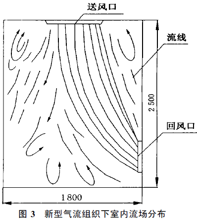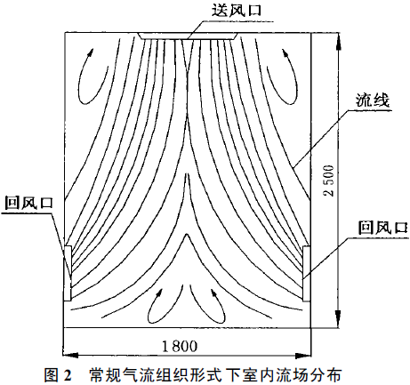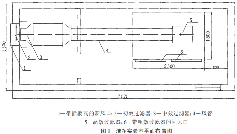 以自行設(shè)計(jì)的實(shí)驗(yàn)臺為例, 通過測定上送單側(cè)下回氣流組織形式下的粒子濃度, 介紹了適合于小面積1000 級無塵車間的這種新型氣流組織形式。分析了新型氣流組織下?lián)Q氣次數(shù)。對這種氣流組織形式在小面積無塵車間中的應(yīng)用作了可行性和經(jīng)濟(jì)性分析。 1 問題的提出 《潔凈廠房設(shè)計(jì)規(guī)范》GBJ 73 —84 規(guī)定:1000 級無塵車間送風(fēng)方式為孔板頂棚送風(fēng), 條形布置高效過濾器頂棚送風(fēng)或者間隔布置帶擴(kuò)散板的高效過濾器頂棚送風(fēng)。回風(fēng)方式為相對兩側(cè)墻下部均勻布置回風(fēng)口回風(fēng), 換氣次數(shù)不小于50 次/h 。這種送、回風(fēng)方式可造成室內(nèi)良好的氣流流型, 室內(nèi)大部分區(qū)域(包括人的工作區(qū))處于主流區(qū), 要求的潔凈度指標(biāo)可在較小的送風(fēng)量下達(dá)到。顯然, 它是一種比較理想的氣流流型。 然而, 1000 級無塵車間是亂流(非單向流)無塵車間中最高的潔凈度等級。這種無塵車間往往面積較小, 且被套在一個(gè)大的潔凈度較低的房間內(nèi)。對于這種獨(dú)立的、分散的、小面積的無塵車間, 它的氣流組織形式應(yīng)該如何呢? 該實(shí)驗(yàn)臺布置如圖1 。 由于在實(shí)際應(yīng)用過程中有些情況會受到房間和無塵車間空間的限制, 不能布置兩側(cè)回風(fēng), 所以采用上送風(fēng)單側(cè)回風(fēng)的形式。 2 兩種氣流組織形式下室內(nèi)潔凈度、容積發(fā)塵量與換氣次數(shù)的 關(guān)系 2 .1 常規(guī)氣流組織形式 1000 級無塵車間常規(guī)送、回風(fēng)方式下造成的室內(nèi)氣流分布見圖2[2]。室內(nèi)大部分區(qū)域, 尤其是工作區(qū)(距地面1 ~ 1 .5 m 左右的區(qū)域)處于主流區(qū)。因?yàn)橥ǔ?/p> 所指的潔凈度指標(biāo)是指工作區(qū)潔凈度, 所以, 在此流型下, 潔凈度、容積發(fā)塵量與換氣次數(shù)的關(guān)系也即主流區(qū)濃度、容許發(fā)塵量與換氣次數(shù)的關(guān)系。 此關(guān)系式[1]可表示為: 式中: Na ———主流區(qū)含塵濃度, 粒/ L(≥0 .5 μm); Ns ———高效過濾器出口含塵濃度, 粒/ L(≥0 .5 μm); G ———無塵車間單位容積發(fā)塵量,粒/(min·m3)(≥0 .5 μm); n ———送風(fēng)換氣次數(shù), 次/h ; β ———主流區(qū)發(fā)塵量與總發(fā)塵量之比; ———渦流區(qū)至主流區(qū)的引帶風(fēng)量與送風(fēng)量之比。 根據(jù)室內(nèi)氣流分布, β 取0 .6(兩側(cè)回風(fēng)取值);取1 .3 ;Ns 取1 .5 粒/ L(≥0 .5 μm)。 將以上數(shù)據(jù)代入式(1), 得Na — G — n 關(guān)系如下: 對于1000 級無塵車間, 取Na = 17 .5 粒/L(≥0 .5 μm), 則式(2)變?yōu)? 2 .2 新型氣流組織形式 新型氣流組織形式下室內(nèi)流場分布見圖3[2]。因?yàn)槭覂?nèi)較大一部分區(qū)域(包括一大部分工作區(qū))處于渦流區(qū), 所以潔凈度、容積發(fā)塵量與換氣次數(shù)的關(guān)系也即渦流區(qū)濃度、容積發(fā)塵量與換氣次數(shù)的關(guān)系, 該關(guān)系式[1]可表示如下: 式中:Nb —渦流區(qū)含塵濃度, 粒/L(≥0 .5 μm)。其他參數(shù)的意義同前。 根據(jù)室內(nèi)氣流分布, β取0 .5(單側(cè)回風(fēng)取值);取1 .3 ;Νs 取1 .5 粒/L(≥0 .5 μm)。 將以上數(shù)據(jù)代入式(4), 得Nb — G — n 關(guān)系: 取Nb =17 .5 粒/ L (≥0 .5 μm), 則式(5)變?yōu)? 由式(3)和式(6)可知, 在室內(nèi)發(fā)塵量相同的前提下, 要滿足同樣的潔凈度, 新型氣流組織所需換氣量要比常規(guī)氣流組織所需換氣量大。如果常規(guī)氣流組織下?lián)Q氣次數(shù)為n1 , 新型氣流組織下?lián)Q氣次數(shù)為n2 ,則n1 與n2 關(guān)系為: 3 新型氣流組織形式用于小面積1000 級無塵車間的技術(shù)經(jīng)濟(jì)分析 由以上分析可知, 要滿足相同的潔凈度, 新型氣流組織下送風(fēng)換氣量要比常規(guī)氣流組織下送風(fēng)換氣量大一倍。對于大面積無塵車間來講, 采用新型氣流組織運(yùn)行費(fèi)用大得驚人, 這顯然是不可取的。然而, 對于小面積無塵車間, 情況就不同了。小面積無塵車間凈化空間體積較小, 要求的送風(fēng)量并不大, 而無塵車間系統(tǒng)的阻力卻比大。這就要求選擇高壓頭風(fēng)機(jī), 而高壓力風(fēng)機(jī)提供的風(fēng)量也不會太小, 往往是提供的風(fēng)量遠(yuǎn)大于無塵車間要求的送風(fēng)量, 在此情況下, 或者采用節(jié)流的方法降低風(fēng)量, 或者在大風(fēng)量下運(yùn)行系統(tǒng)。因此, 如果在小面積無塵車間中采用新型氣流組織形式,和常規(guī)氣流組織形式相比, 風(fēng)機(jī)型號并不需要加大,運(yùn)行耗電量也不會增加, 而系統(tǒng)初投資卻可大大減少。顯然, 這是一種最為適宜的選擇。我們以上述實(shí)驗(yàn)臺為例對此問題作一分析。無塵車間體積為2.3 m ×1.7m ×2.2 m =8.6m3 , 若按1000 級無塵車間最小換氣次數(shù)50 次/h 計(jì)算, 所需送風(fēng)量為430 m3/h , 而空氣循環(huán)系統(tǒng)阻力至少在150 ~ 200 Pa左右。風(fēng)機(jī)的選擇應(yīng)同時(shí)滿足送風(fēng)量和克服系統(tǒng)阻力的要求, 即風(fēng)機(jī)的壓力為150 ~ 200 Pa , 此壓力對應(yīng)的送風(fēng)量為1200 ~ 2 000m3/h , 大大超過要求的送風(fēng)量, 這就說明用單側(cè)回風(fēng)不用增加系統(tǒng)初投資, 反而可以節(jié)省系統(tǒng)初投資。在此情況